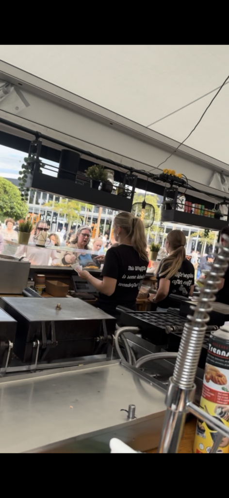 Alles wordt live op locatie gebakken en bereid. Van wafels tot broodjes– verser krijg je het niet.