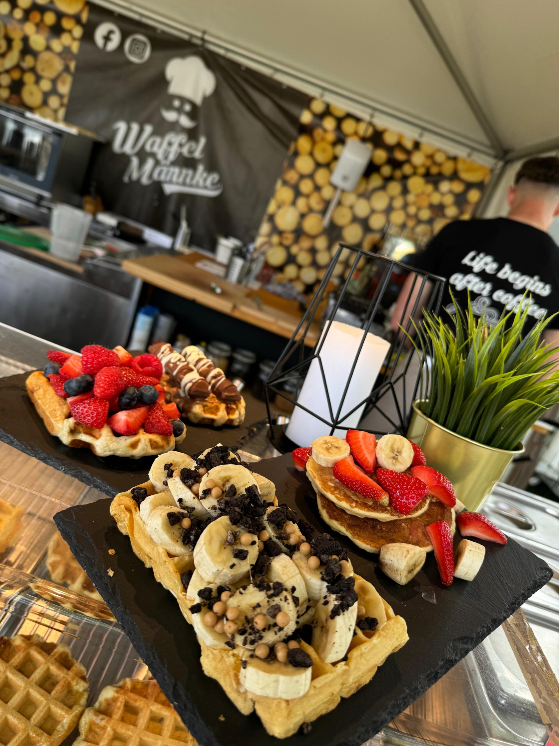 Alles wordt live op locatie gebakken en bereid. Van wafels tot broodjes– verser krijg je het niet.